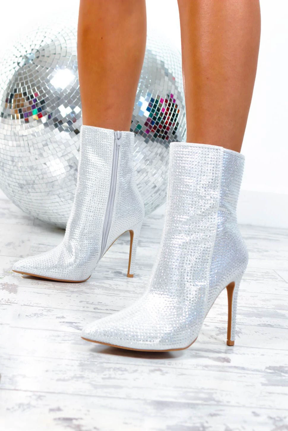 Forget glass slippers, this princess wears boots! These showstopping silver ankle boots feature a stunning silver metallic finish with all-over silver rhinestone that’ll dazzle under the disco lights. The perfect pointed ankle boots with a sassy point toe and fierce stiletto heel, style them with your most glam gown from our collection to pull focus at your next party.