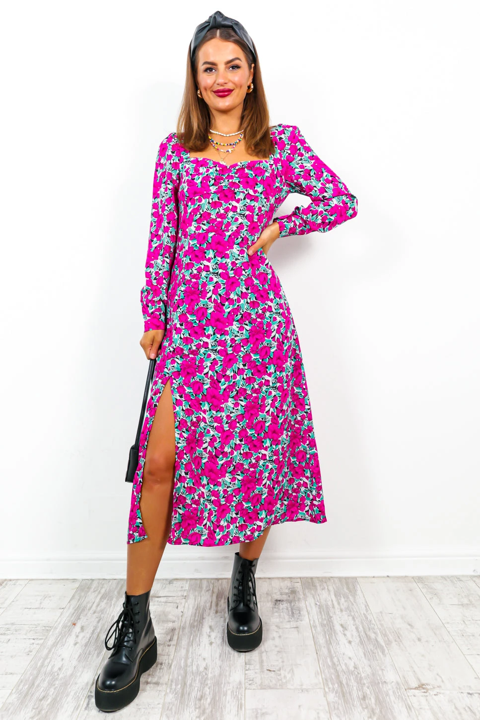 It’s always a good time for florals – so live life in full bloom, Doll! In magenta and green, this botanical number steals the show. With a milkmaid style neckline and a leg split to add a little sass, this is the perfect midi dress to see you through brunch! Add a matching magenta lip and an oversized leather jacket for a trendy cool girl look that will have them asking for the details.