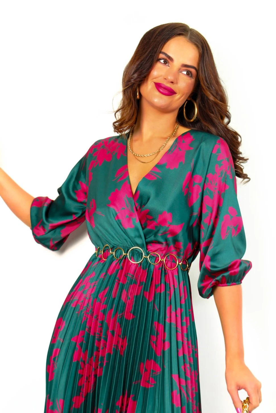 She believed she could, so she did! And she did it all dressed like a bold b**ch. This ultra glamorous midi dress features a forest and magenta floral print throughout and a pleated skirt perfect for swishing around. Go all out on the magenta for your heels and clutch bag because this colour is here to stay!