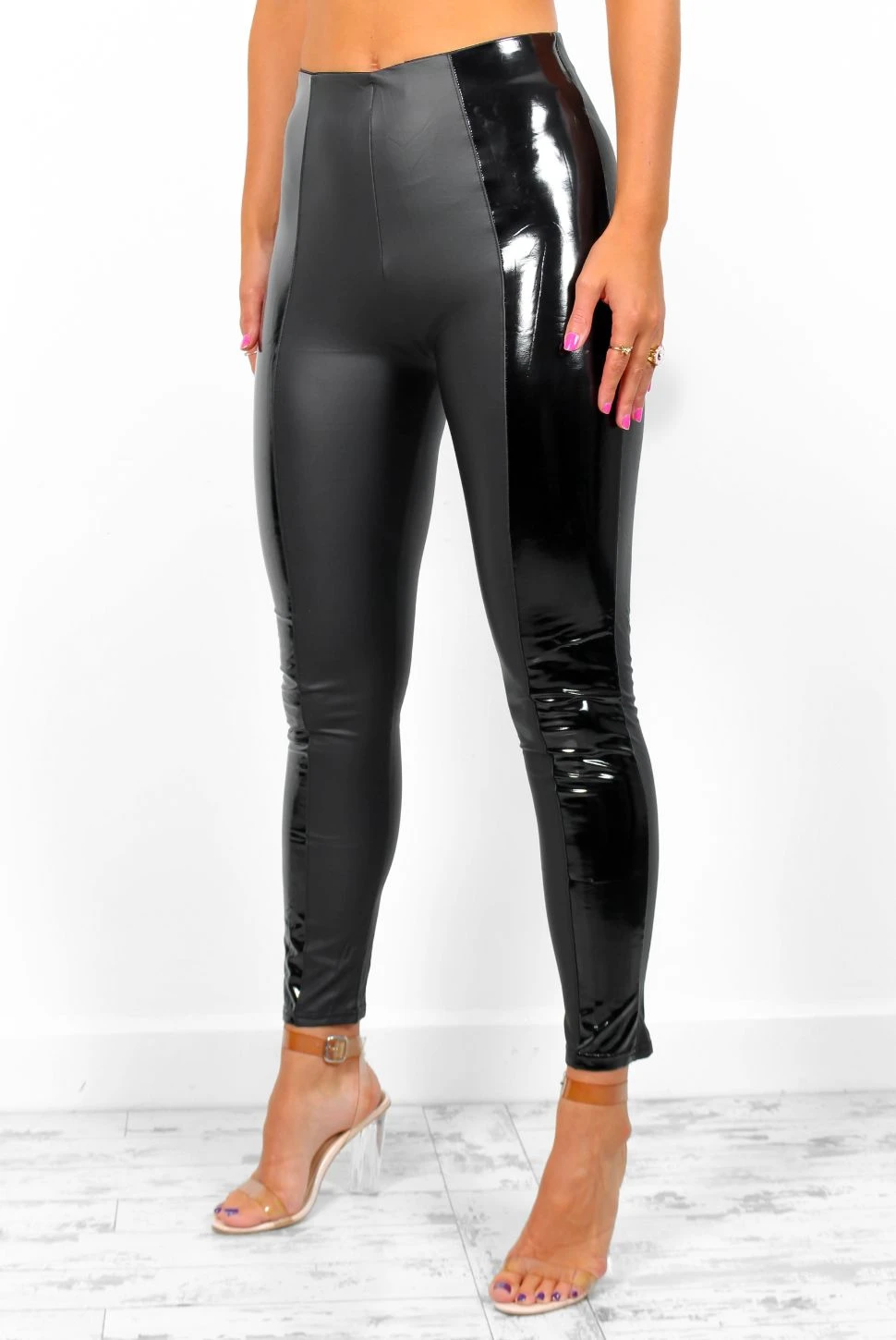 Channel your inner bad b***h this A/W season! Perfect for dressing up or down, these black faux leather leggings are different from the rest with their wet look panel striping down each leg, lined and with an elasticated waist for extra comfort. Style with an oversized knitted jumper for those shopping spree days!