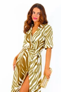 Whole Lot Of Style – Khaki White Zebra Midi Shirt Dress
