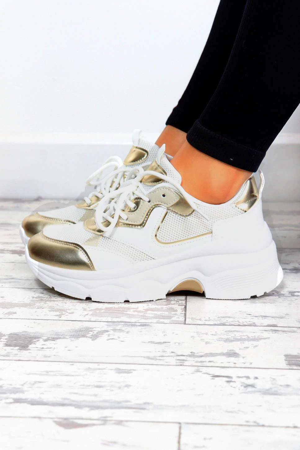 Fashion is with you every step of the way, Doll! Introduce some sports luxe to your shoe-drobe with these bang on trend trainers. White and chunky, they’re everything we want in our off duty footwear and the gold detailing adds a touch of glam that we all love and adore. Style with neutral ribbed leggings and an oversized coat for those effortlessly cool day to day vibes.Â