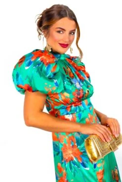 You’ve found the one! This gorgeous midi features tropical orange florals on a forest green base making this versatile for any season. Complete with a satin finish and an elasticated waist to show off your shape. Bottomless brunch ‘fits never looked so good, so stick on your heels and grab your clutch – we’ll have a cocktail waiting!