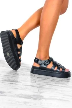 Only A Step Away – Black Chunky Platform PU Sandals