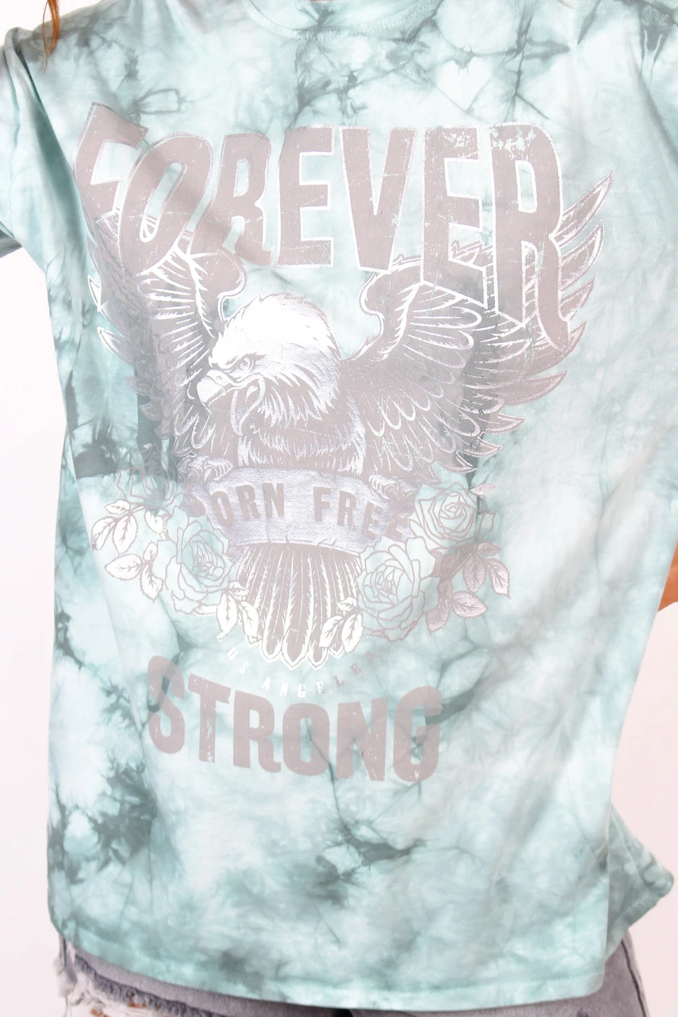 She’s a strong boss b*tch forever. This cool tone tee features a mint green tie dye pattern that screams confidence. With a “Forever Strong” graphic print serving as a daily reminder to slay all day, every day. Crafted with comfort and durability in mind, this t-shirt is ready to rock any off-duty look. Throw on over cycling shorts and chunky trainers for coffee dates in the park.