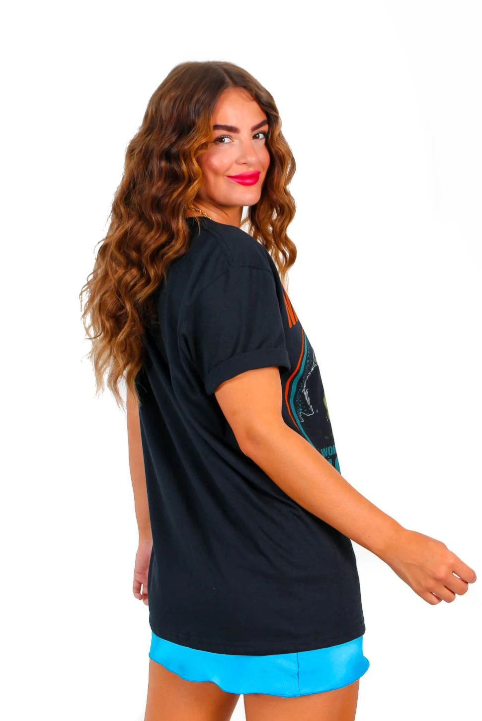 If looks could kill, Doll. Kickstart your off-duty rotation with this headbanging Motley Crue graphic t-shirt, featuring an edgy rock band print of the iconic Crue on a classic fit black tee with short sleeves and crew neck. Show off your wild side at the bar in shredded mom jeans and strappy heels, or kick back at home sweet home in joggers and slipper boots.