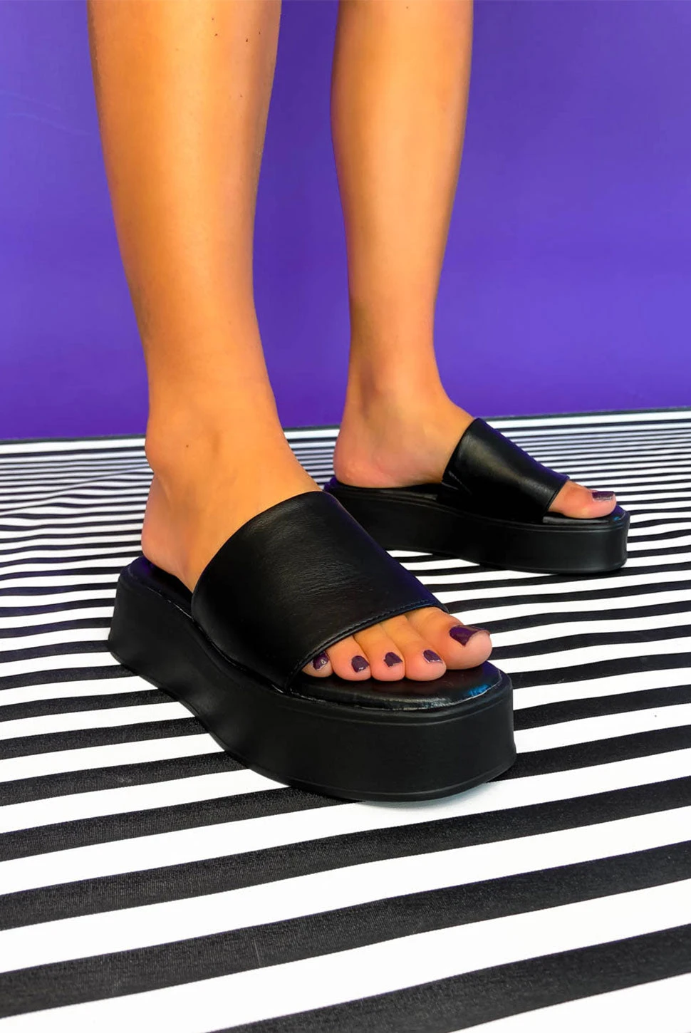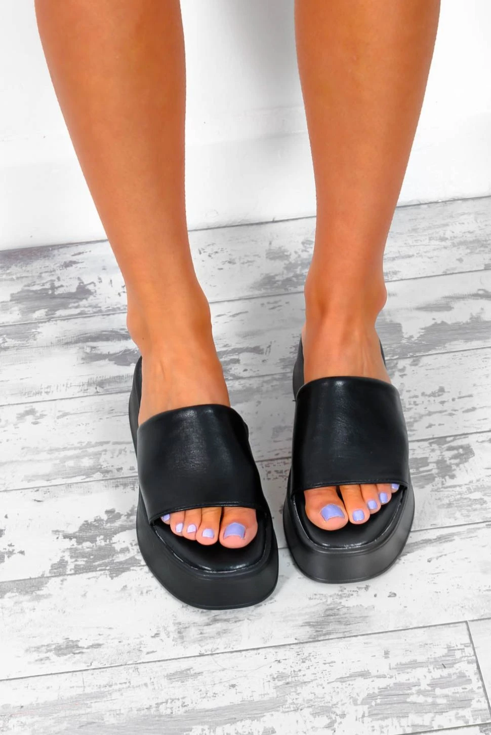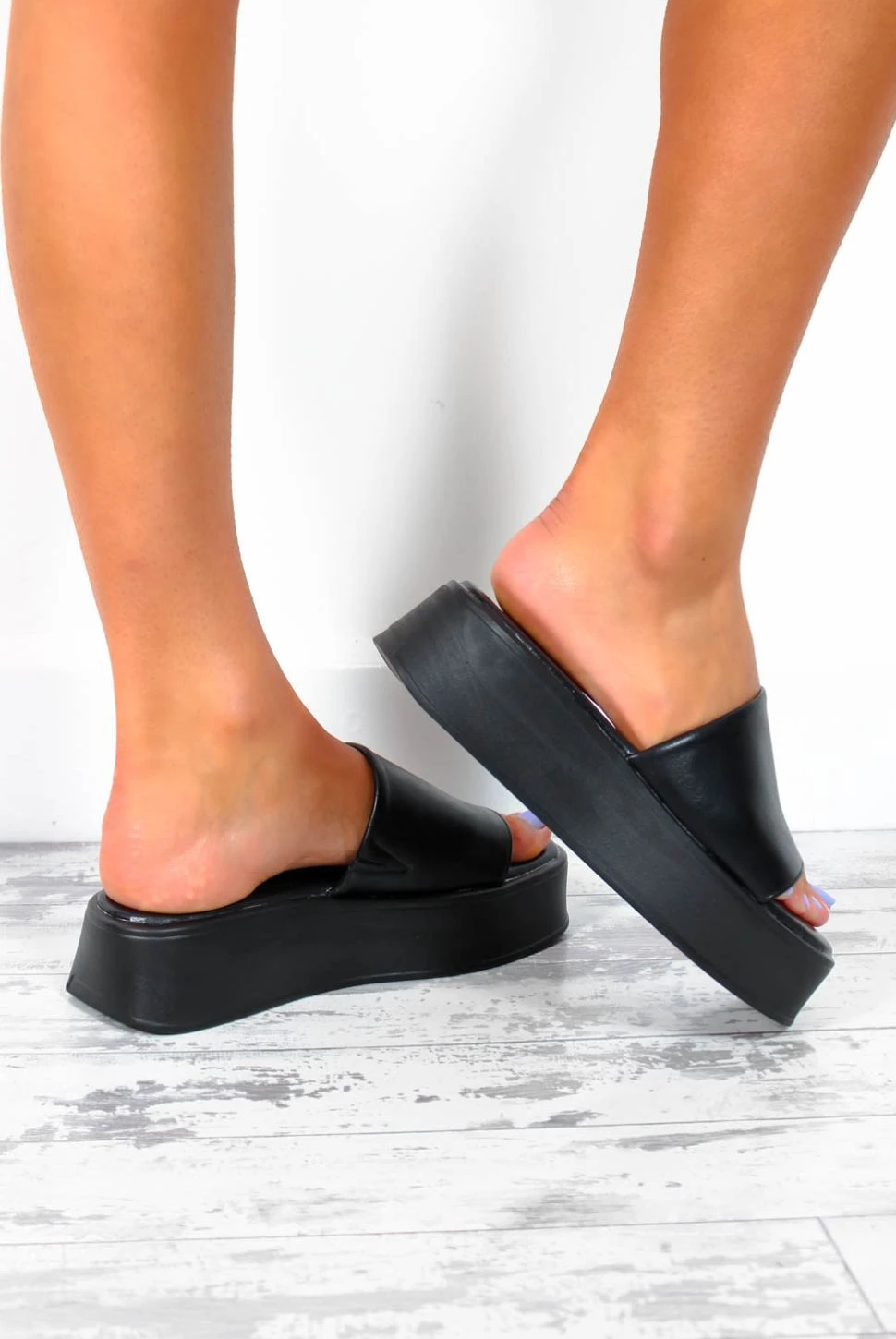 Elevate your footwear this season and take your style game to new heights, literally! In a slider style with a trendy chunky platform sole and a black faux leather throughout, they’re the perfect combination of chic and casual. Slide on with an oversized shirt and your bikini for those holiday beach days or a figure hugging bodycon LDB and a pair of oversized shades for those sunny beer garden days with the Dolls.
