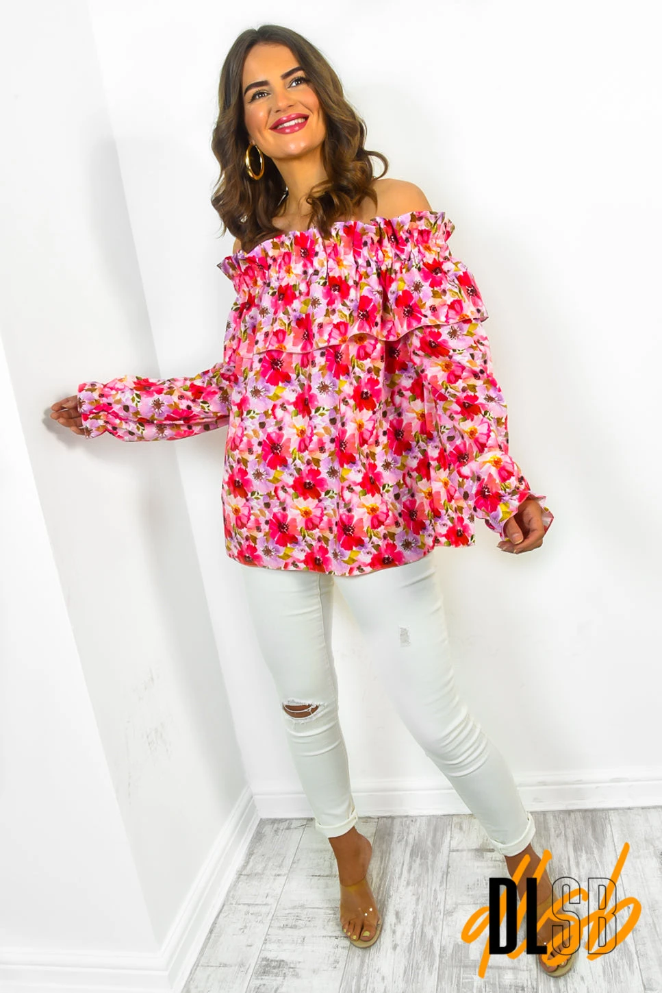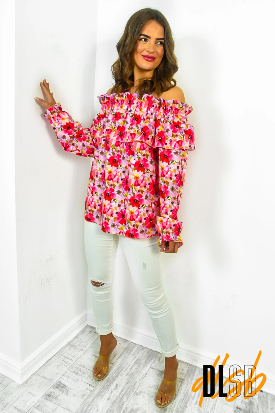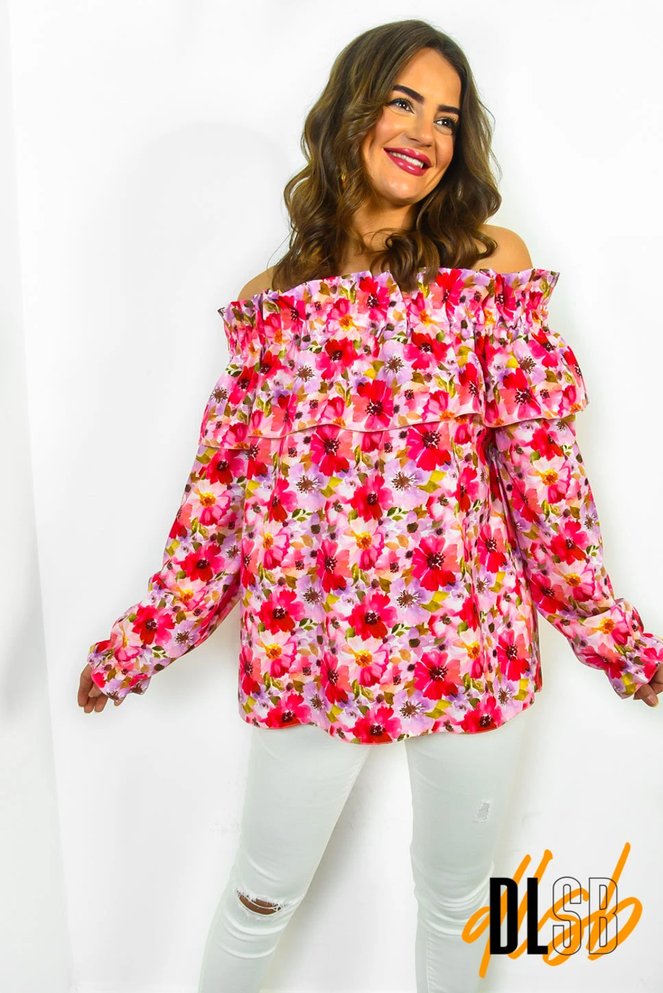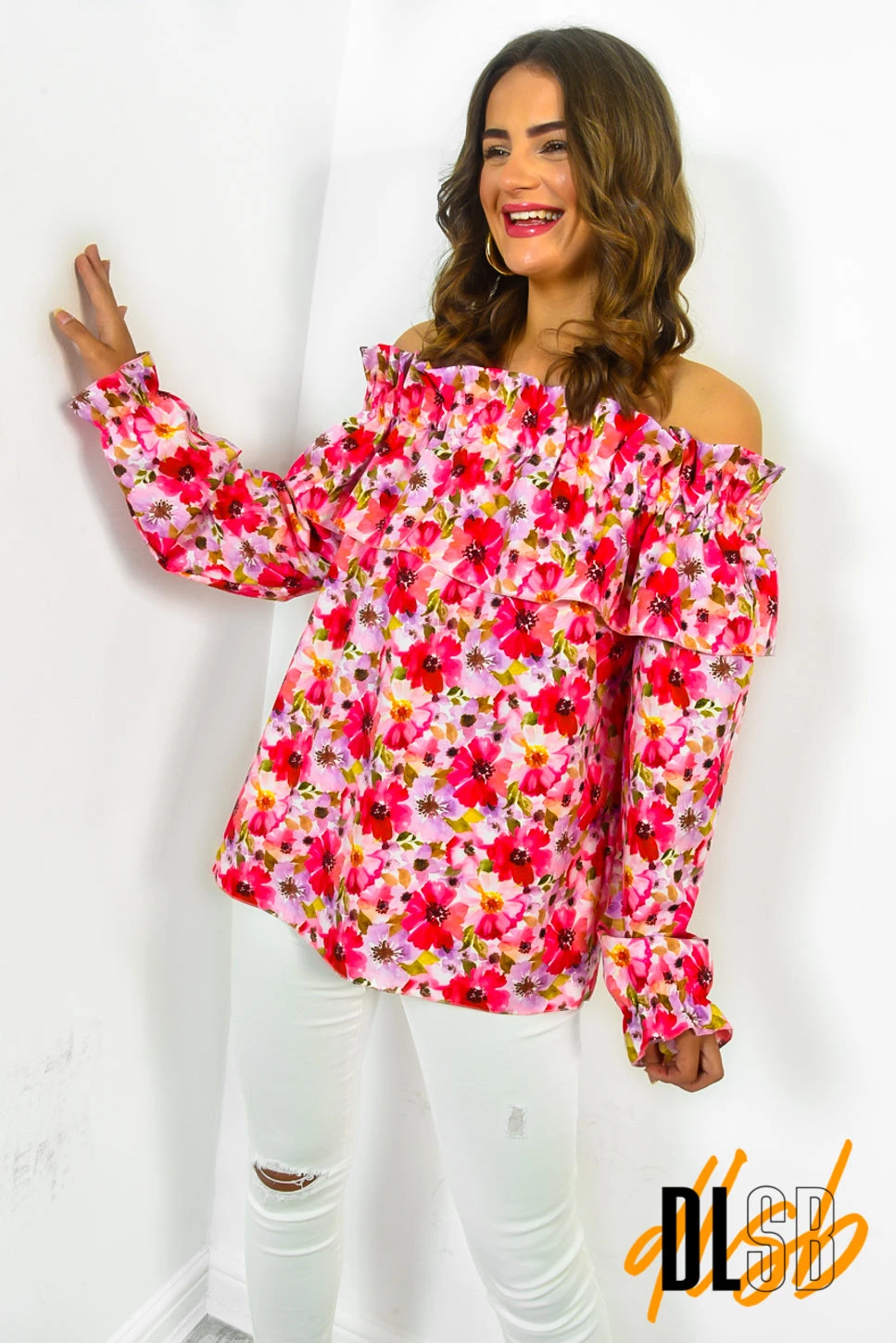 We can’t get enough florals this summer and we’re loving this pink number. Featuring an off-the-shoulder neckline and long cuffed sleeves. Style with jeans and sandals for a stylish day-to-night look.