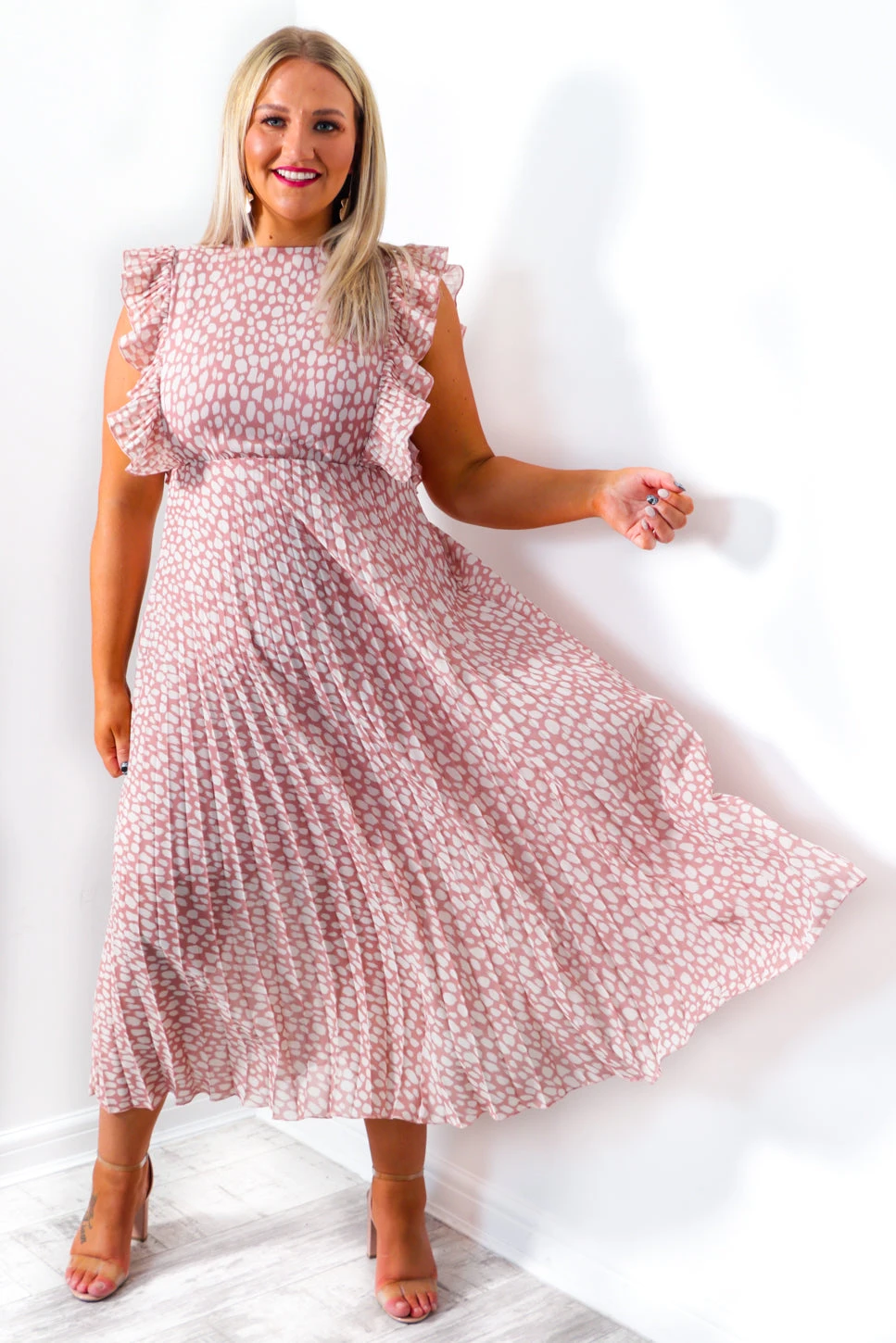 We’re totally blushing over you in this dress. In a maxi length it comes in a pink spotted print fabric, pleats, frill detailed bodice and a pleated skirt. It can be reversed depending on your plans or mood! Blush is nothing without gold accessories, add a pink lip for that wedding you’ve got coming up.