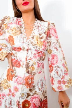 Catwalk Shape Of You – Cream Printed Ruched Midi Dress