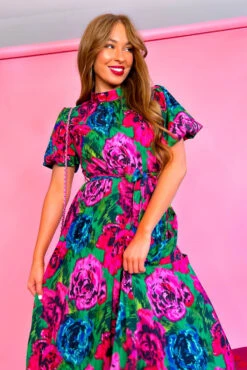 Never Looked Better – Pink Orange Floral One Shoulder Midi Dress