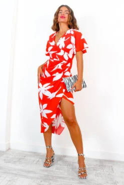 A Class Of Your Own – Pink Multi Floral Angel Sleeve Midi Dress
