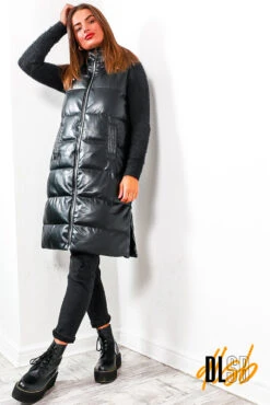 It’s time to update your A/W wardrobe and this gilet is the perfect addition. Featuring a black PU fabric, a hood, high side pockets and zipped front and sides. Throw on to add style to any outfit.