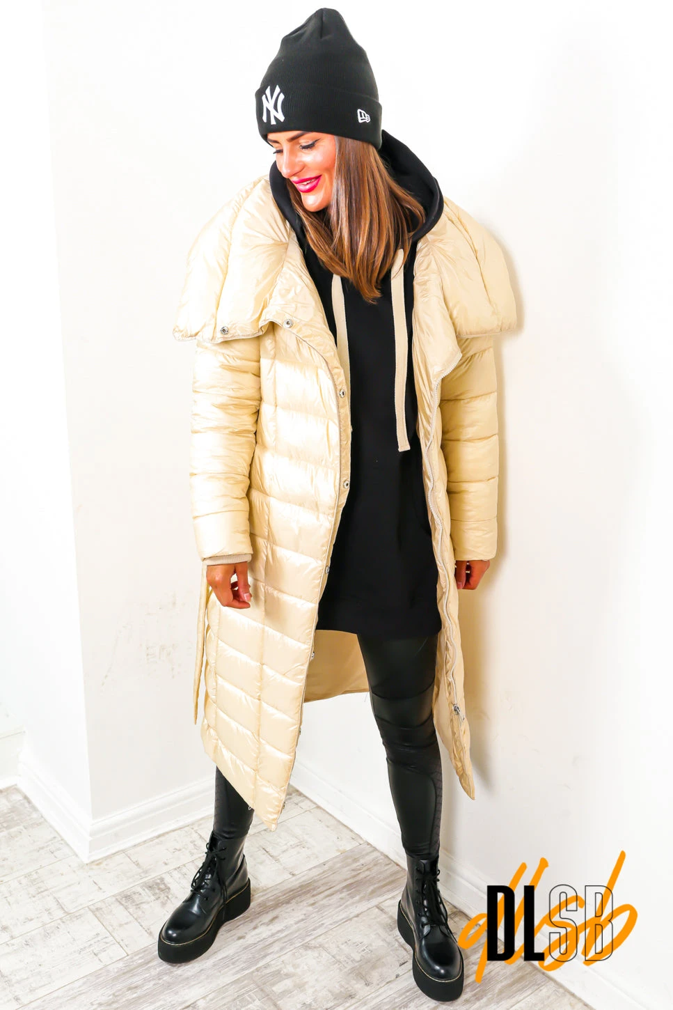 We are obsessing over this cream coat, perfect for that new season wardrobe. It will take you from autumn all the way through winter! Featuring a funnel neck, snap buttons with additional zip, and a waist tie to cinch, you need this staple product in your life. Pop over any autumn outfit with chunky boots for that iconic autumn-winter look.