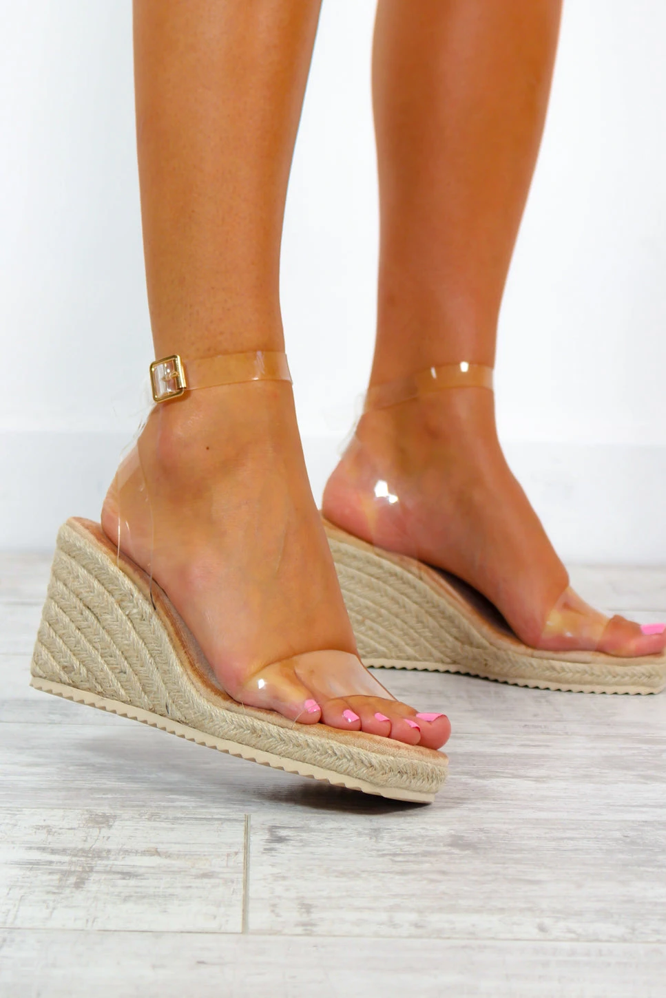 Your sun-kissed days and balmy nights will be nothing short of fabulous with these wedges. With espadrille wedge heels, clear barely there straps, and an ankle buckle fastening, they’re super versatile and add a touch of sass and style to any outfit. Step into summer with confidence and make a bold fashion statement poolside with your bikini and a stunning cover up.Â